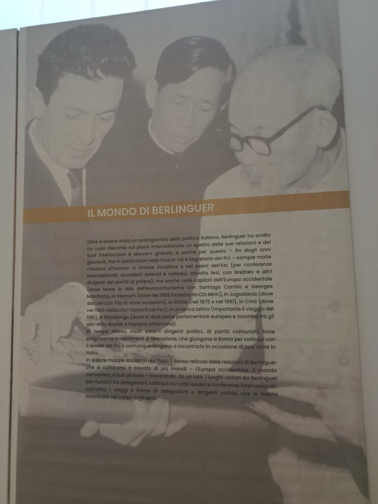 L’esposizione, attraverso la biografia di un leader come Enrico Berlinguer, analizza il suo lascito, politico, culturale e civile, nella ricorrenza dei 40 anni dalla morte. Curata da Alessandro d’Onofrio, Alexander Hobel e Gregorio Sorgonà, la mostra intende restituire non solo l’immagine e le parole di un protagonista della storia del Novecento, ma anche la forza del suo pensiero e in particolare delle sue riflessioni sulla pace, vero fil rouge del percorso espositivo.