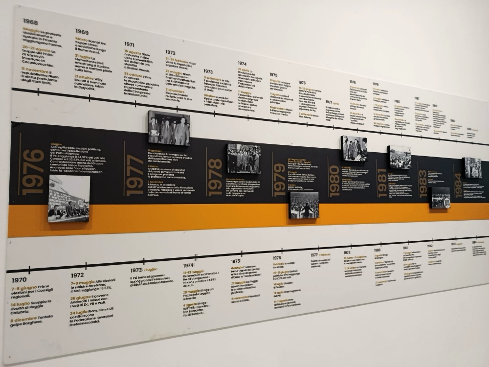 Disponibili per i visitatori materiali originali audiovisivi, sonori, fotografici e documenti d’archivio che ricostruiscono la vicenda umana e la vita pubblica di Berlinguer attraverso un racconto in cinque sezioni: gli affetti, il dirigente, la crisi italiana, la dimensione globale, attualità e futuro.